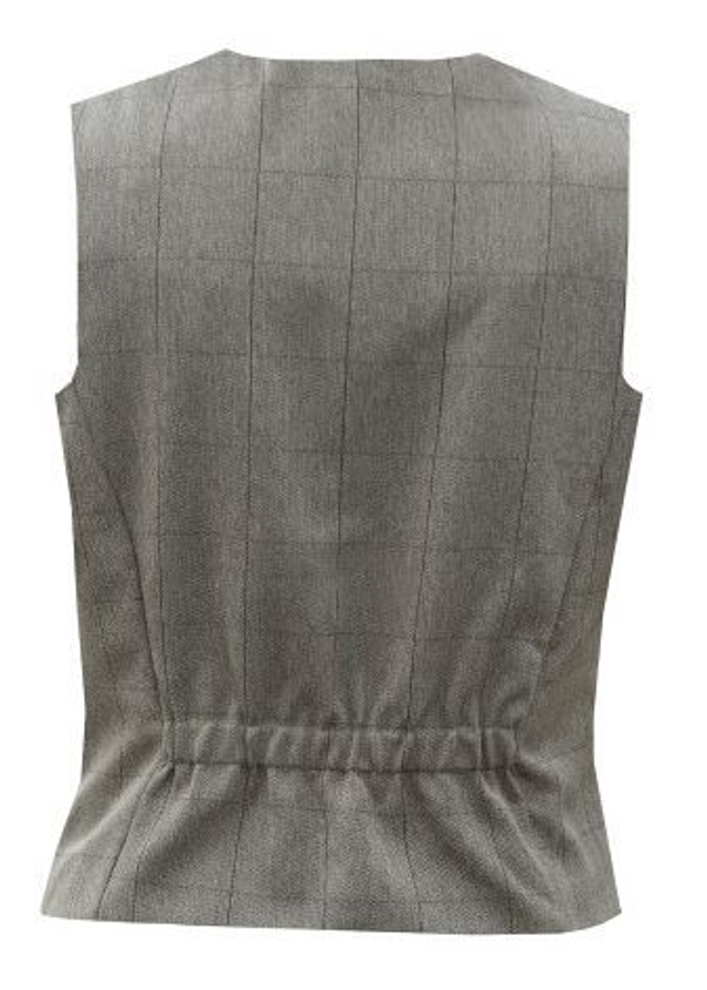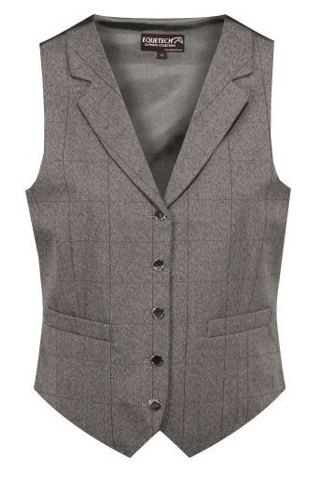 A classical brown tweed lapel waistcoat, ideal for in-hand, ridden showing, hunting or casual wear. Lightweight, with engraved Equetech Gold buttons. Features a self fabric back with adjustable concealed elasticated panel to back and traditional fixed flap / pocket welts. 65% Polyester/ 35% Viscose. Machine Washable.