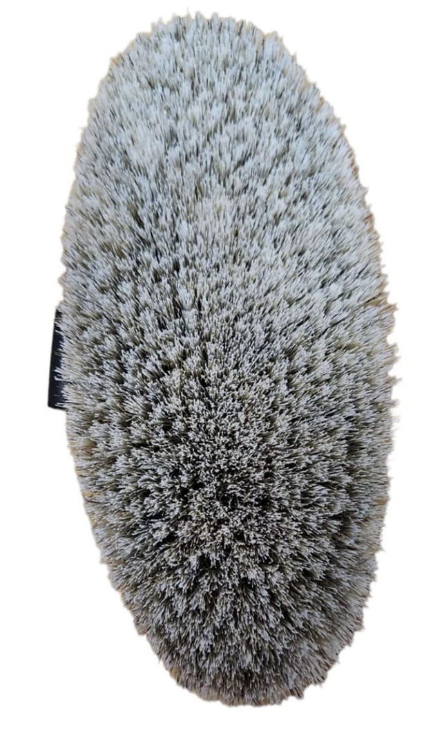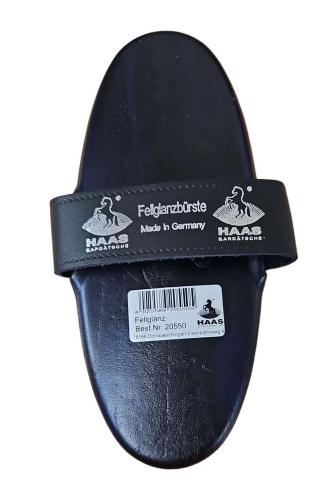 The Fellglanzburste (meaning Fur Shine Brush) is made from a mix of man made bristles and medium/soft white horsehair. It gives a great shine by removing small dust particles and is excellent for use on sensitive or clipped horses.